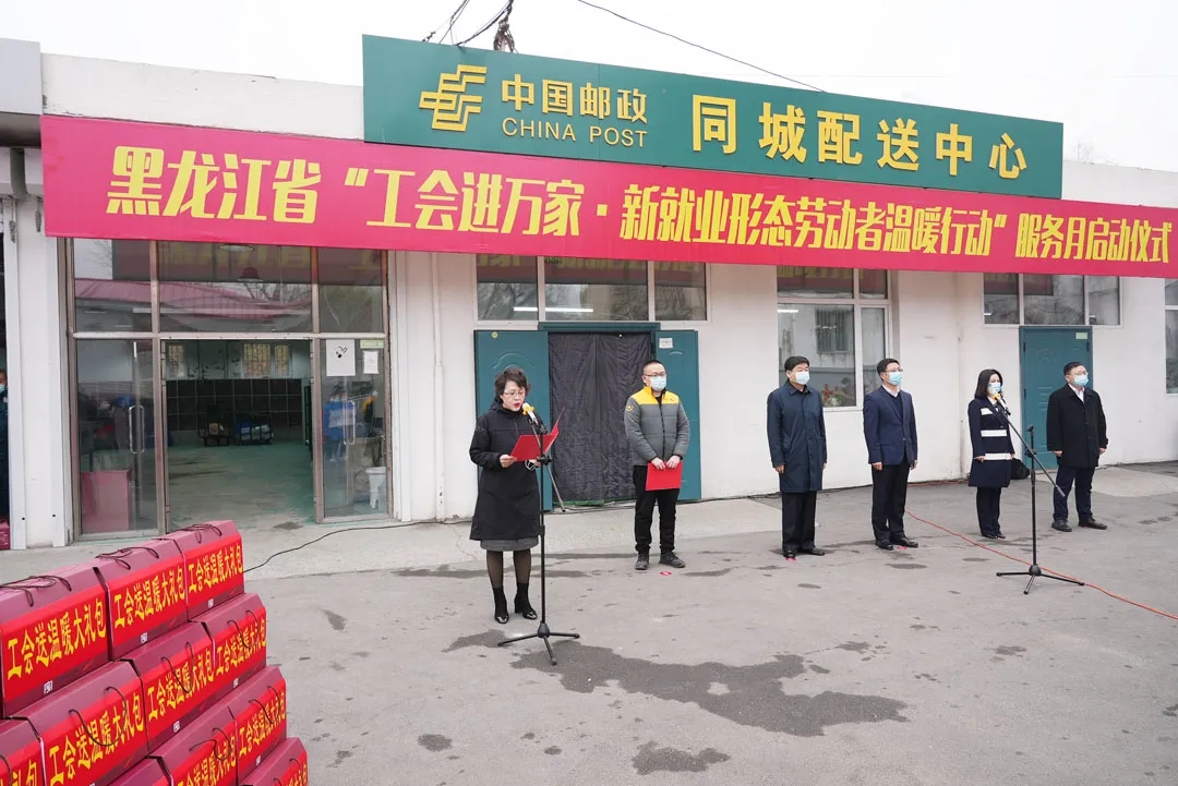 启动仪式上,快递企业工会代表宣读了倡议书,表示将发挥企业工会作用,凝聚新就业形态群体劳动者,以诚实劳动、勤勉工作,成为助推龙江高质量发展的重要力量。与会领导为新就业群体劳动者代表发放了慰问大礼包。