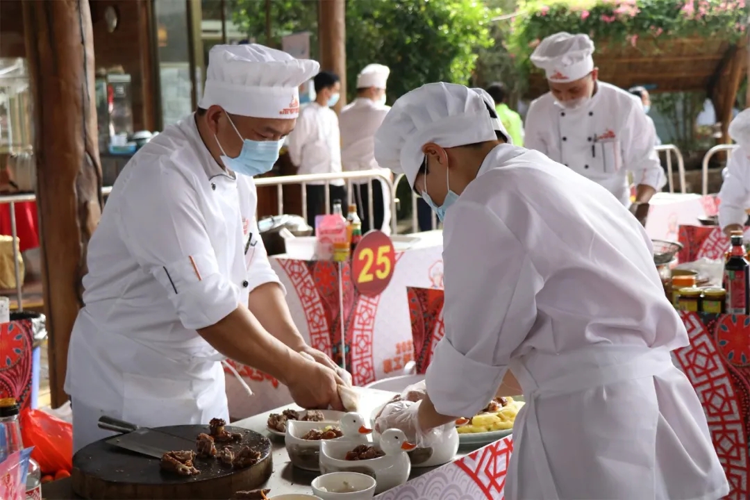 本次竞赛由佛山市总工会主办,高明区总工会、高明区餐饮行业工会联合会承办。本次竞赛参照《国家职业技能鉴定中式烹调师(四级)考试大纲》依据制定竞赛标准,分为专业理论考核和实操技能考核两部分。60名选手分两组进行实操比赛,从材料准备、刀工表现、造型设计等方面展示了选手们的熟练技能和精湛技术。