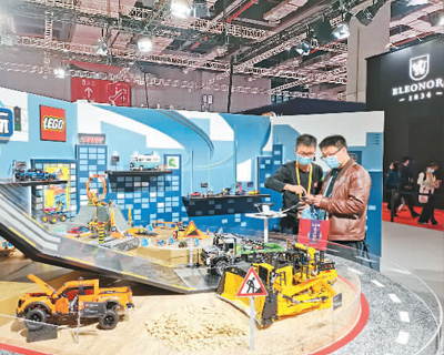 第四届进博会消费品展区内,参观者在乐高展台体验玩具车。 人民日报海外版记者 邱海峰摄