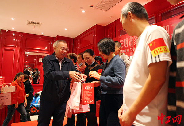 中工网讯 11月7日,福建三明市总工会联合家政行业工会联合会开展“2021年三明市家政服务职工‘微心愿’活动”,130名家政职工及家属参加活动。市总工会党组书记、常务副主席池芝发,党组成员、副主席李伸安来到活动现场,慰问从事家政服务的职工,并送上保温杯、红枣等礼包。