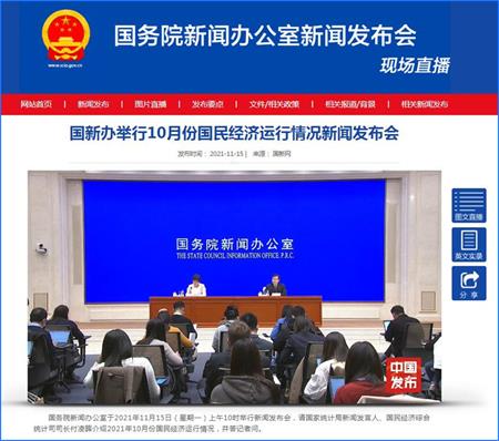 中工网讯 据国务院新闻办公室网站消息,11月15日,国新办举行10月份国民经济运行情况新闻发布会,国家统计局新闻发言人、国民经济综合统计司司长付凌晖介绍2021年10月份国民经济运行情况,并答记者问。