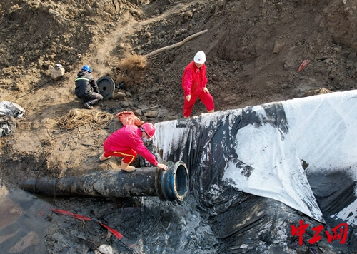 11月16日,在唐山曹妃甸双龙河畔,冀东油田油气集输公司管道分公司员工正在对南庙508调水管线进行清扫施工,这是该油田首次应用大口径管道内衬技术进行管道修复作业,为安全环保隐患治理提供了强有力的技术支持。
