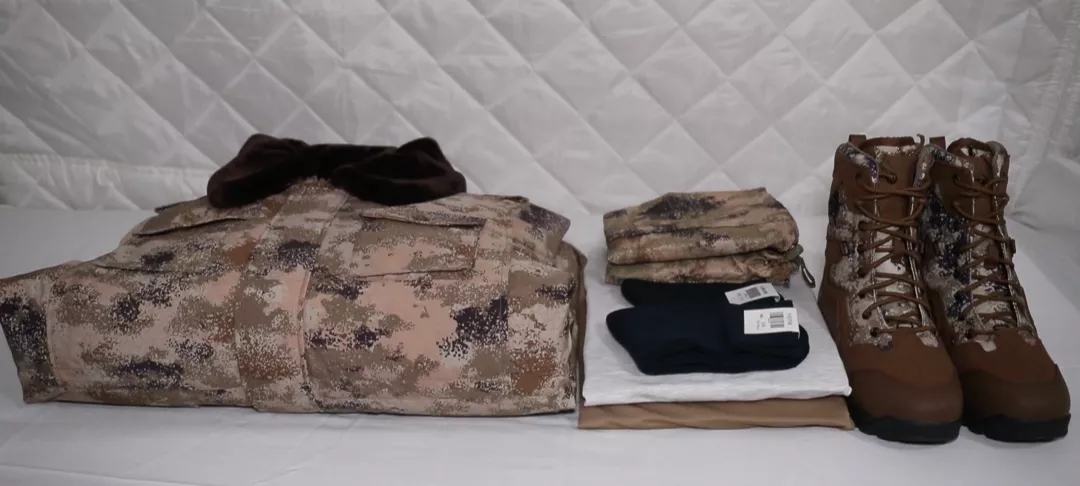 边防巡逻冬作训内衣裤、长袖抗菌内衣裤、毛巾袜、抗菌袜、20式新型羽绒大衣、20式新型轻便防寒靴。可以说从头暖到脚,从里暖到外。