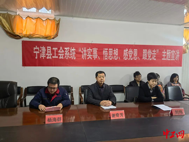 中工网讯(工人日报-中工网记者田国垒 通讯员张敏 葛红普)日前,山东德州市宁津县总工会举办“讲实事、悟思想、感党恩、跟党走”主题宣讲活动,深入学习宣传贯彻党的十九届六中全会精神,引导职工坚定不移听党话、矢志不渝跟党走。