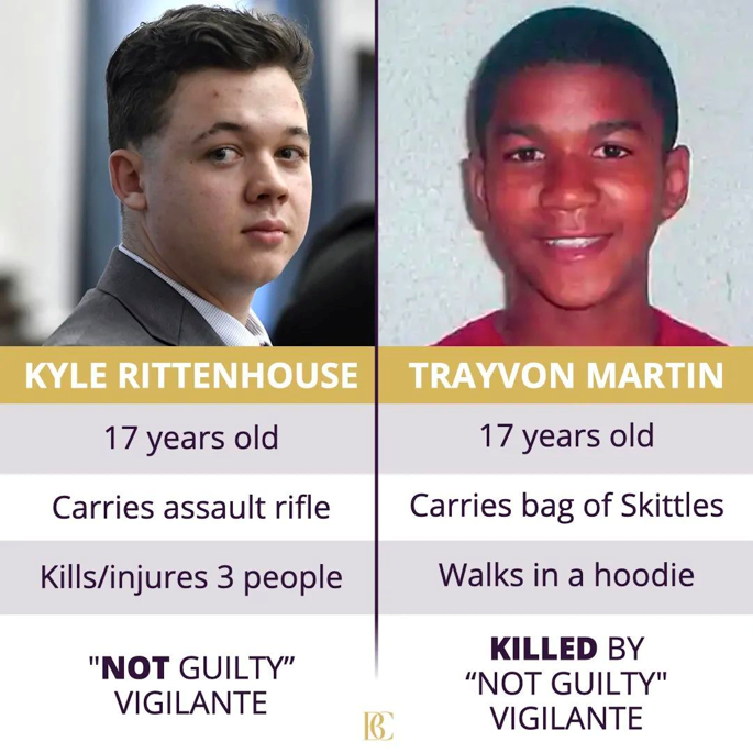抗议者:令人愤怒至极的是,对于年轻的黑人男子像特拉伊冯·马丁这样的黑人男孩,被枪杀只是因为拿着彩虹糖,而像里滕豪斯这样的人,在跨州枪杀两个人后却在所有判决中都被判无罪,这太荒谬了,真正揭示了(司法)系统是多么破碎不堪。