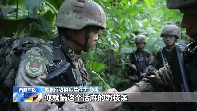 西藏军区“墨脱戍边模范营”战士 马勇:大家以后注意了,这个活麻蜇了以后,你就搞这个活麻的嫩枝条,把这个汁液涂到这个活麻扎的地方,涂匀了,过个10多分钟它就不痛了。