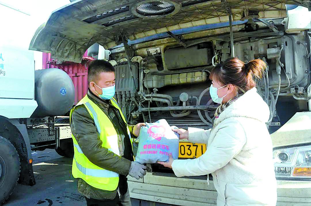 “感谢党和政府的关心。这个健康大礼包里有为我们准备的防疫物品、洗漱用品、暖宝宝等,都是平时要用的,让我心里暖洋洋的……”货车司机王新抱着健康大礼包激动地说。