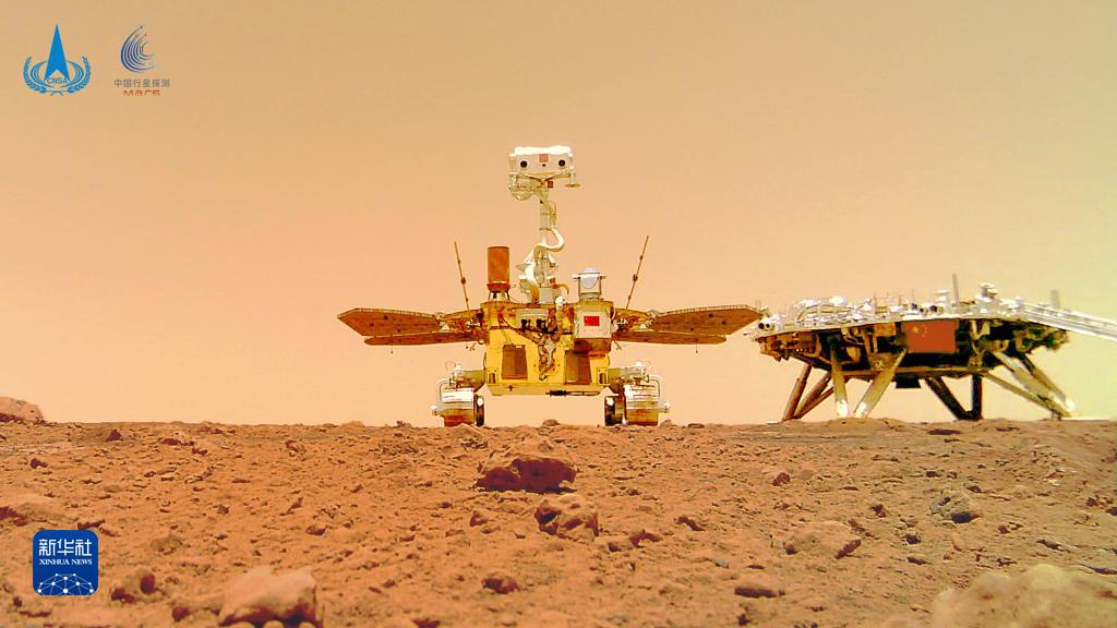 这是6月11日公布的由祝融号火星车拍摄的“着巡合影”图。新华社发(国家航天局供图)