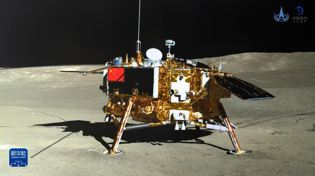 这是玉兔二号巡视器全景相机对嫦娥四号着陆器成像。新华社发(国家航天局供图)