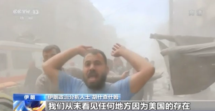 伊朗政治分析人士 胡什查什姆:不论美国走到哪里,都会带来不稳定、苦难和战争,我们从未看见任何地方因为美国的存在而变得和平和繁荣,美国所到之处,都是在掠夺和伤害那里的人民。