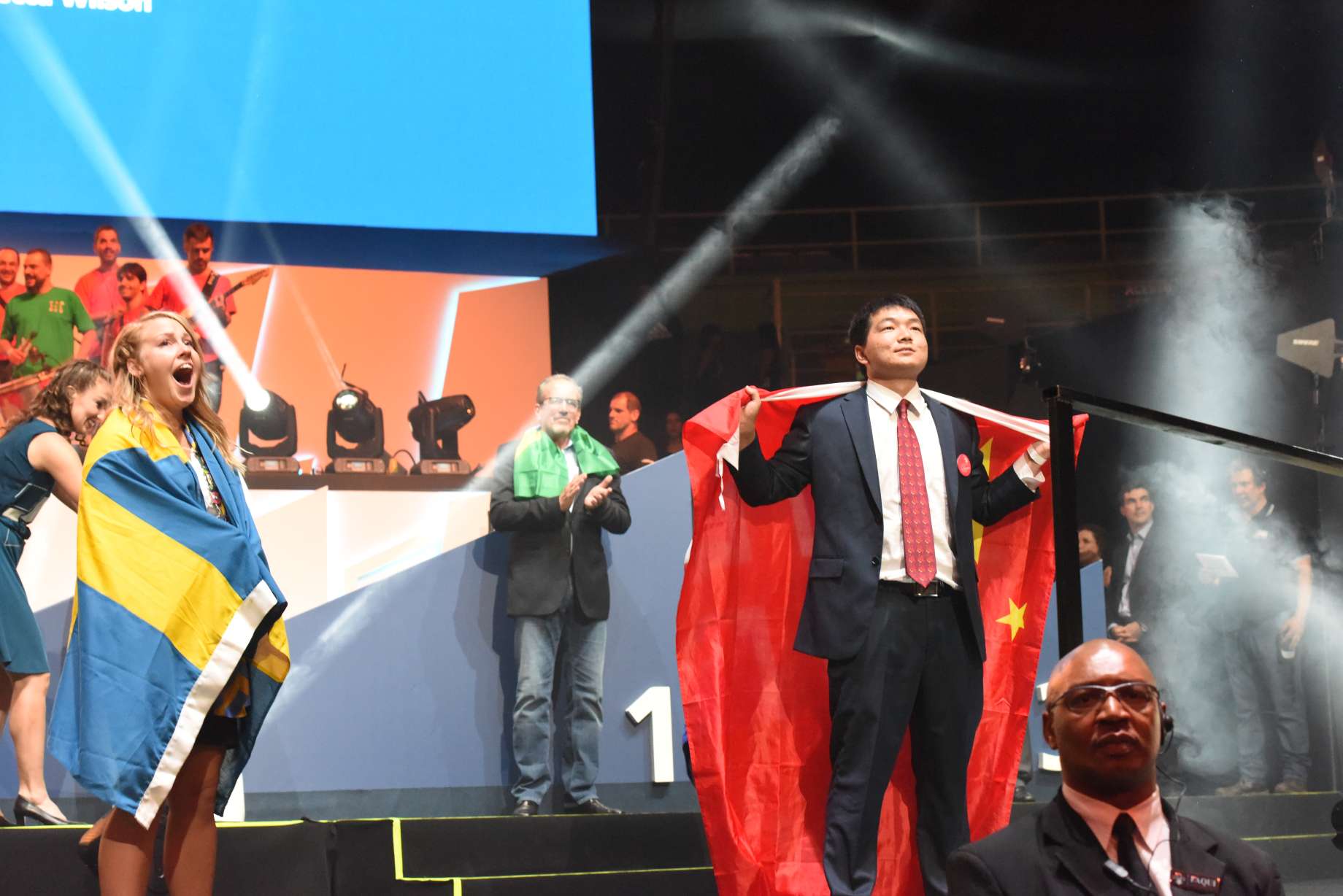 图为杨金龙在第43届世赛汽车喷漆项目比赛颁奖现场。受访者供图