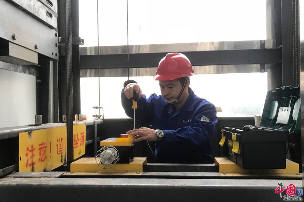 蔡剑云说:“在里面会出很多汗,出来后衣服基本上都是湿的。”尽管井道和检修机房里像桑拿房一样闷热,两人却丝毫不敢松懈,耐心地为电梯加润滑油、紧固螺丝、检查电梯救援装置、查看电梯运行效果等。蔡剑云说:“修电梯的话和中医看病差不多,也是需要通过望闻问切,然后通过观察听声音,最后再结合自己平时的经验来判断故障的点在哪里。”