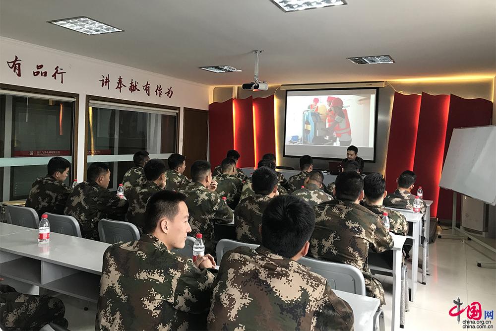 图为蔡剑云给消防员培训解救被困电梯群众的课程。