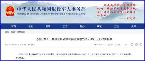 中工网讯 据退役军人事务部网站消息,近日,退役军人事务部正式印发《退役军人、其他优抚对象优待证管理办法(试行)》(以下简称《优待证管理办法》)。退役军人事务部就有关问题予以解读。