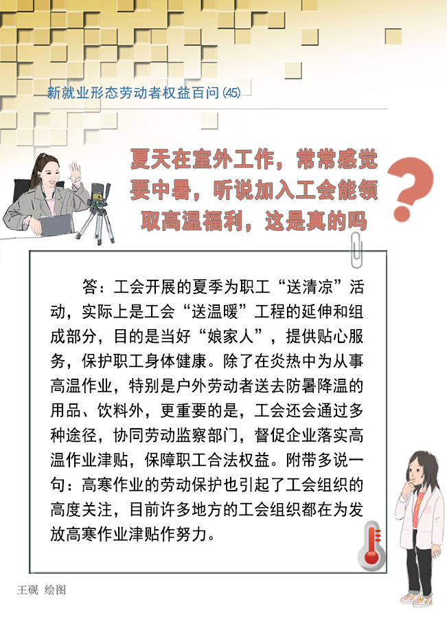 【新就业形态劳动者权益百问(45)】夏天在室外工作,常常感觉要中暑,听说加入工会能领取高温福利,这是真的吗?