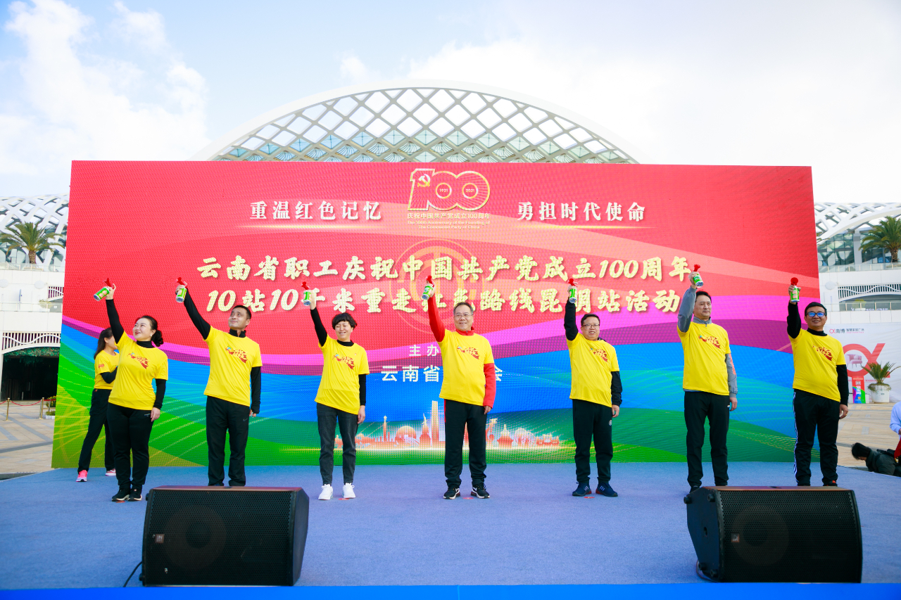 12月18日,来自昆明市500余名职工在滇池国际会展中心,开启了云南省职工庆祝中国共产党成立100周年10站10千米重走红色路线(以下简称“云南省职工健步走”)昆明站线下健步走活动。