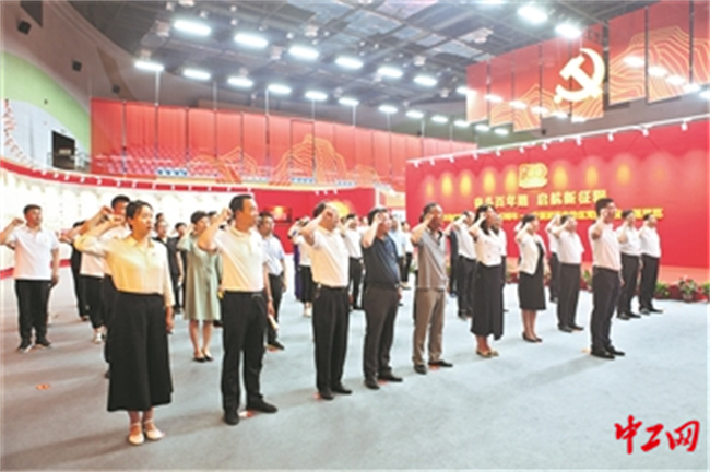 宁夏总工会党员干部参观“奋斗百年路 启航新征程”党的建设主题展览。