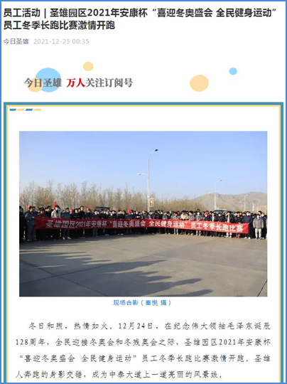 中工网讯 据今日圣雄微信公众号消息,12月24日,新疆中泰(集团)圣雄工业园区2021年安康杯“喜迎冬奥盛会 全民健身运动”员工冬季长跑比赛激情开跑。