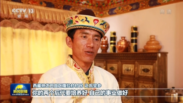 西藏林芝巴宜区嘎拉村村民 达瓦坚参:总书记给我嘱托了,两个后代要培养好,自己的事业要做好。今年的话差不多收入35万元左右。