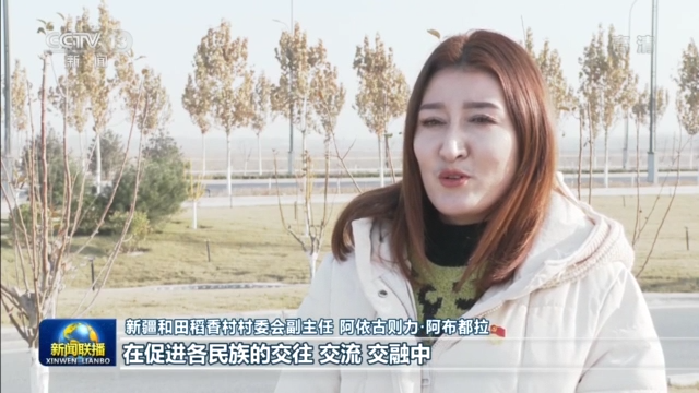 新疆和田稻香村村委会副主任 阿依古则力·阿布都拉:在促进各民族的交往、交流、交融中,实现民族团结进步与乡村振兴相融相生,老百姓增收致富的门路也越来越多。
