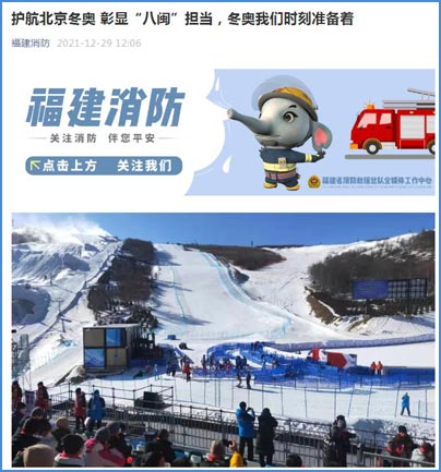 距离2022年冬季奥运会越来越近,福建省消防救援总队援奥工作组将秉持负责的态度、坚持严格的标准,持续开展辖区内消防安全隐患的排查整治,牢牢构筑冬奥“防火墙”,确保消防安全万无一失,全力迎接2022年北京冬季奥运会胜利召开。