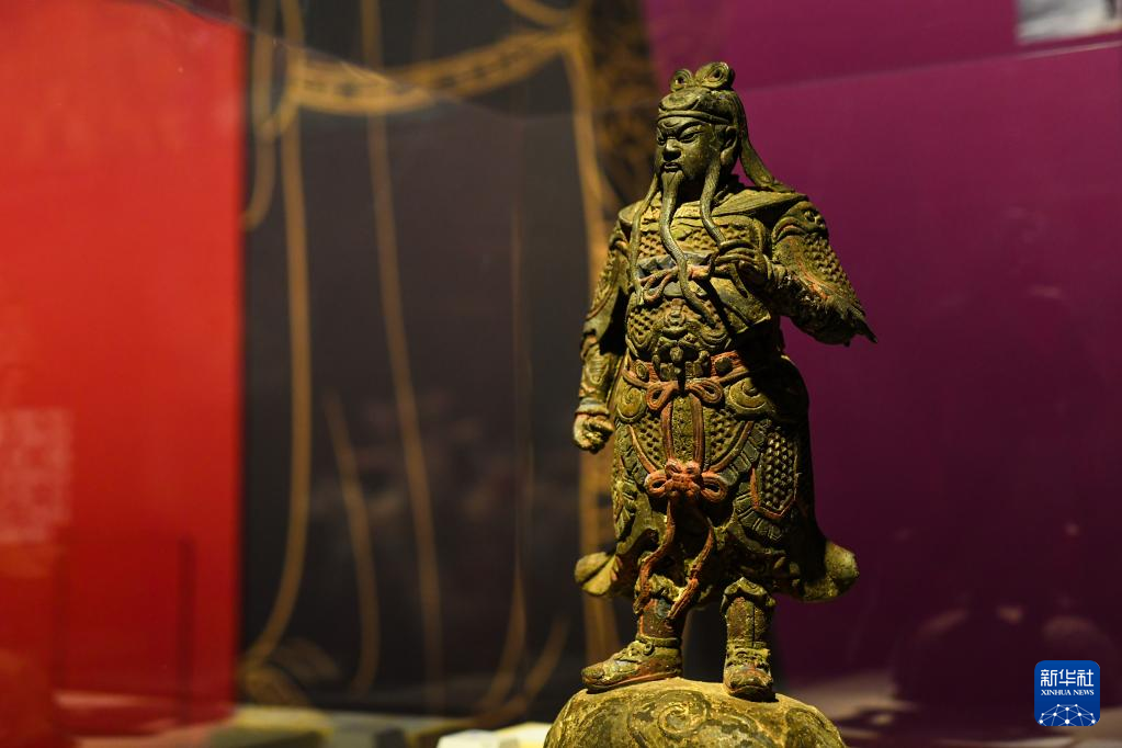 这是12月28日在成都博物馆“富贵长春——中国传统财富文化展”上拍摄的彩绘关公铜立像。