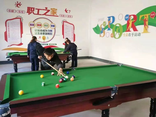 乒乓球桌、动感单车、台球……走进滕州尚品本色智能家居有限公司职工活动室,崭新的设备器材,整洁的活动场地,靓丽的主题喷绘,备感温馨。“谢谢工会工作组,帮助我们建设了职工活动室,让我们工作之余可以在这儿放松休闲。” 正在打球的小王高兴地说。