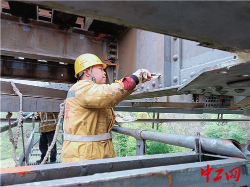 中国铁路南宁局集团有限公司桂林工务段加强桥梁设备维修保养,1月6日组织班组职工对湘桂线K265+603桥下钢梁进行除锈油漆,钢梁腻缝作业,把钢梁凹凸不平处用原子灰刮平整,避免钢梁积水产生锈蚀,及时消除安全隐患,全面提升桥梁设备质量,确保铁路行车安全。(中国铁路南宁局集团有限公司 文:李国星 图:全昌华)