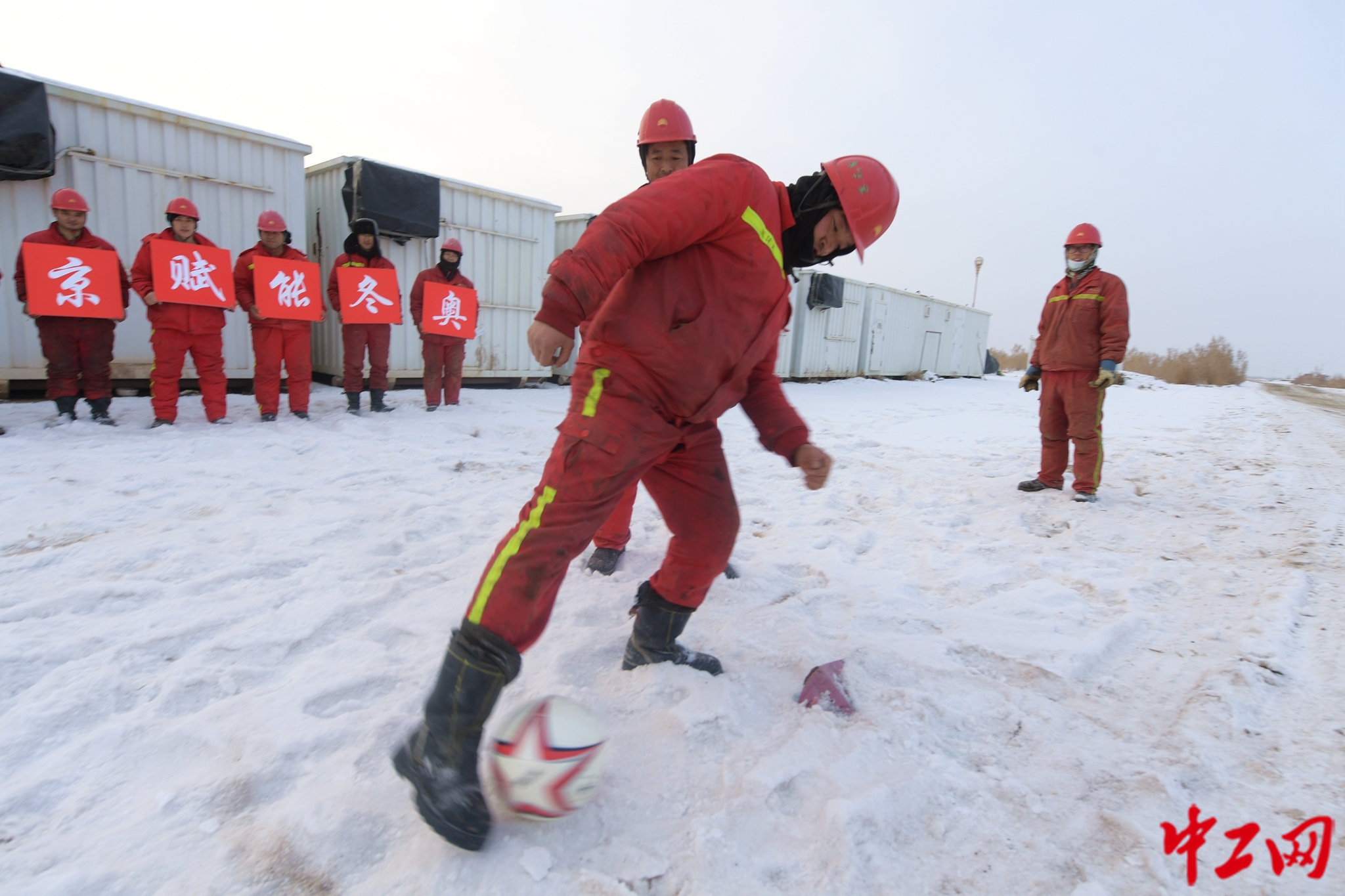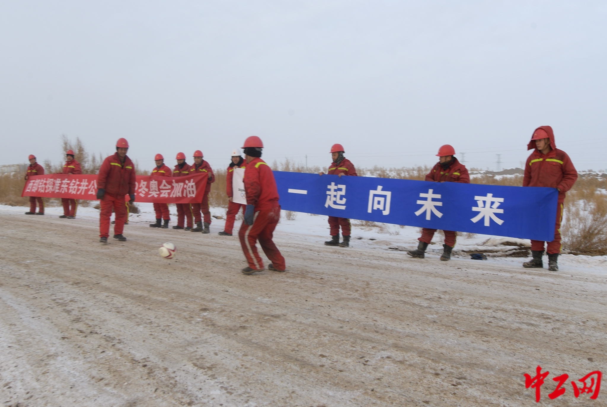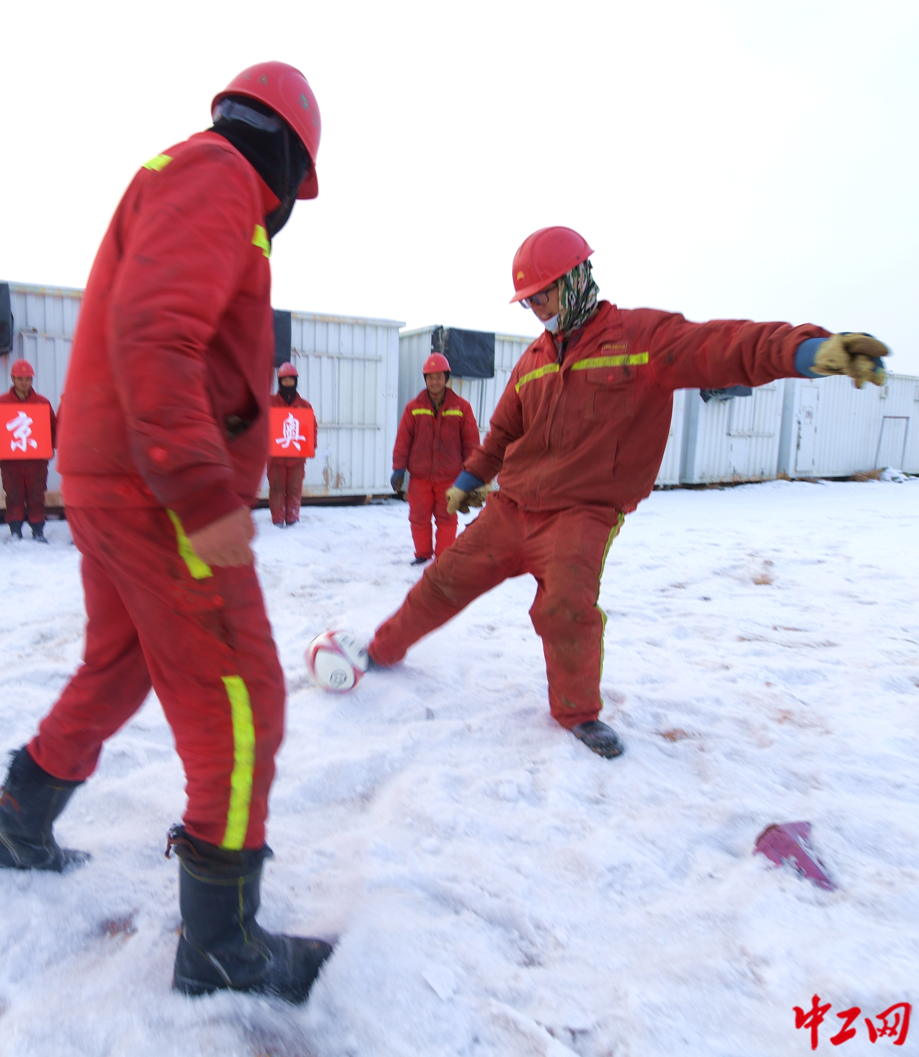 中工网讯 2022年1月11日,新疆克拉玛依,中国石油西部钻探准东钻井公司70223钻井队石油工人,利用搬家安装的间隙时间,班组之间开展雪地足球赛、堆雪人、雪地拔河等雪上活动,零距离享受冰雪运动的快乐,激发石油工人积极向上、团结协作的集体荣誉感,感受冰雪运动带来的魅力,共同迎接北京冬奥会的到来。