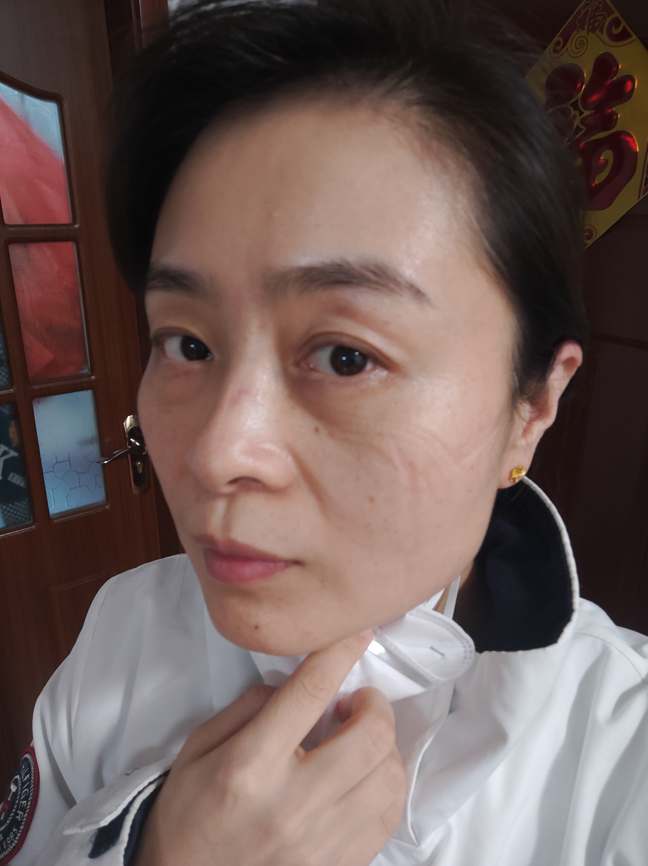 连续一天的工作,机械化地重复着同样动作,汗水早已打湿了她的衣衫,就连护目镜里也冒出汗水,时常迷湿她的双眼。她知道,疫情面前绝不允许停下来。回到家往往是深夜了,脱下防护服,鼻梁、耳朵都已淤红,嗓子也哑到说不出话来,懂事的女儿和儿子赶紧帮妈妈抹药、倒水。