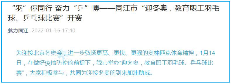 本次“迎冬奥,教育职工羽毛球、乒乓球比赛”的举办,不仅展现了同江市教育职工们的精妙球技和昂扬向上的精神风貌,也有助于发扬“奋勇争先,竞技拼搏”的运动精神,营造文明健康的城市氛围;让职工们真正感受到体育竞技的乐趣,激发全市人民体育健身热情,共同为迎接冬奥的到来加油助威。
