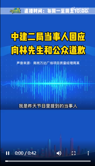 项目经理周经理在节目中向林先生和公众道歉:昨天我没有控制好情绪,说了不当言辞,在这里我真诚地向林先生表示道歉,对造成的影响向公众表示歉意。