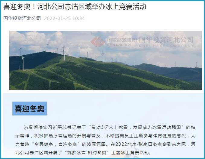 据国华投资河北公司微信公众号消息,为积极推动冰雪运动的开展与普及,不断提高员工主动参与体育健身的意识,大力营造“全民健身,喜迎冬奥”的浓厚氛围,在2022北京·张家口冬奥会到来之际,国华投资河北公司赤沽区域开展了“筑梦冰雪 相约冬奥”主题冰上竞赛活动。
