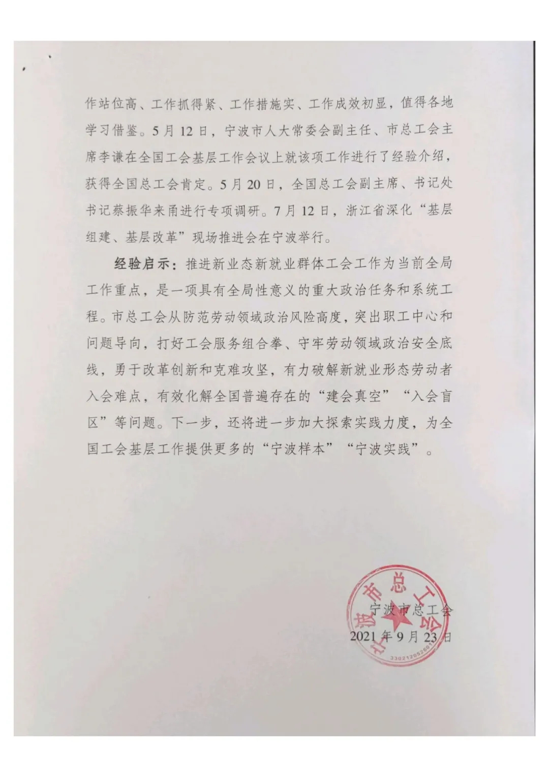 【新就业形态劳动者网上入会及会员管理模式创新优秀案例】浙江省宁波市总工会:出实招 12万名“八大群体”有了娘家
