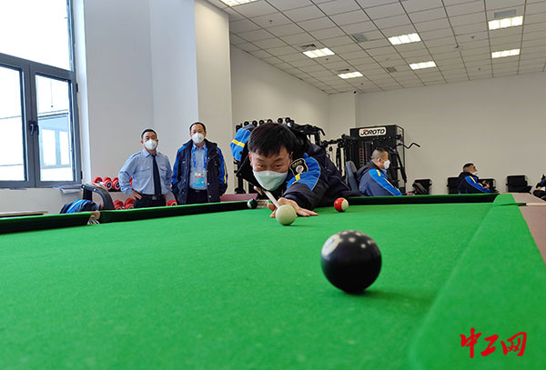 北京公交集团冬奥会和冬残奥会延庆上会团队的职工正在打台球