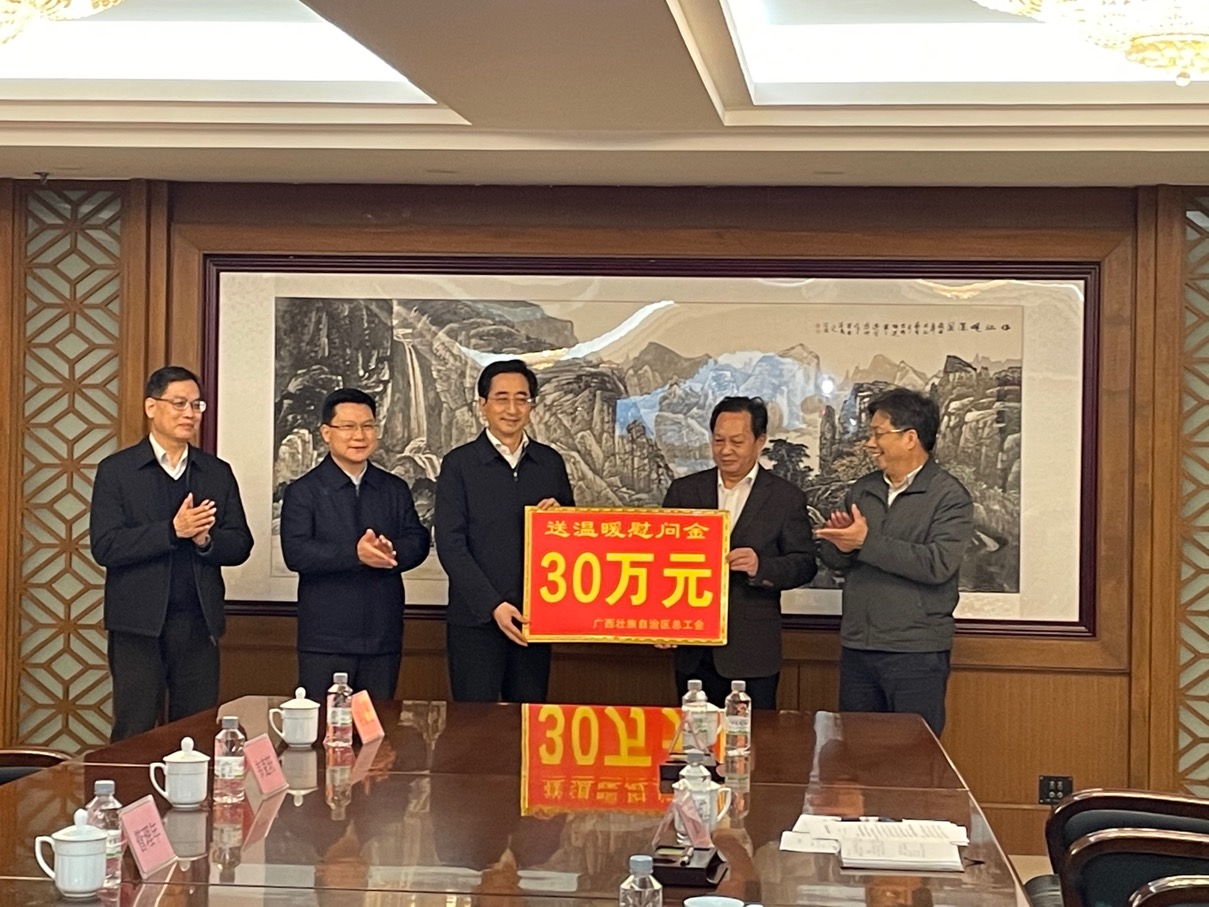 1月24日,广西壮族自治区人大常委会副主任、党组副书记,自治区总工会主席张晓钦率队到自治区国资委、自治区供销社开展送温暖慰问活动,把党和政府的关怀、工会组织的温暖送到广大职工的心坎上。