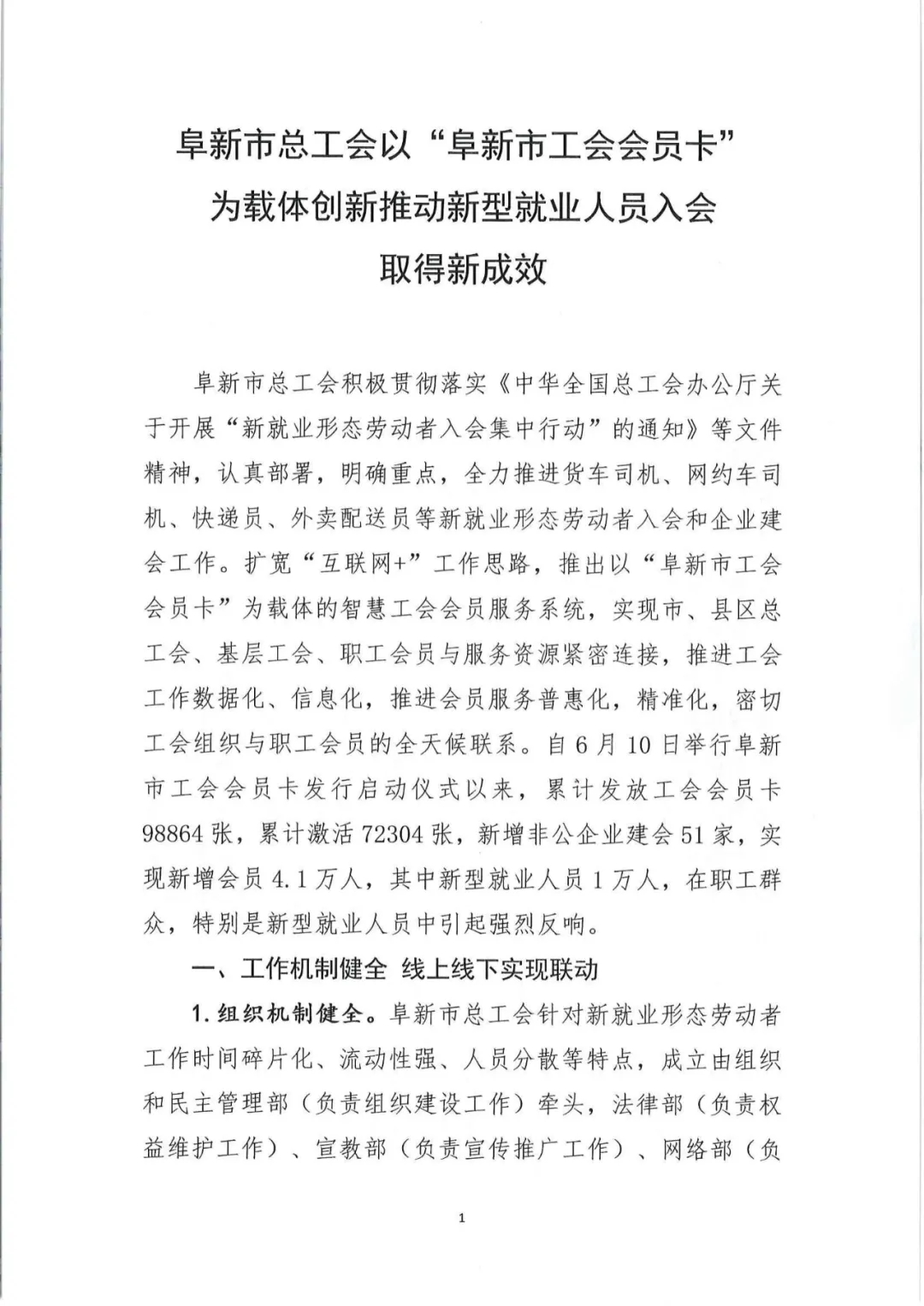 【新就业形态劳动者网上入会及会员管理模式创新优秀案例】辽宁省阜新市总工会:“以阜新市工会会员卡”为载体创新推动新型就业人员入会取得新成效