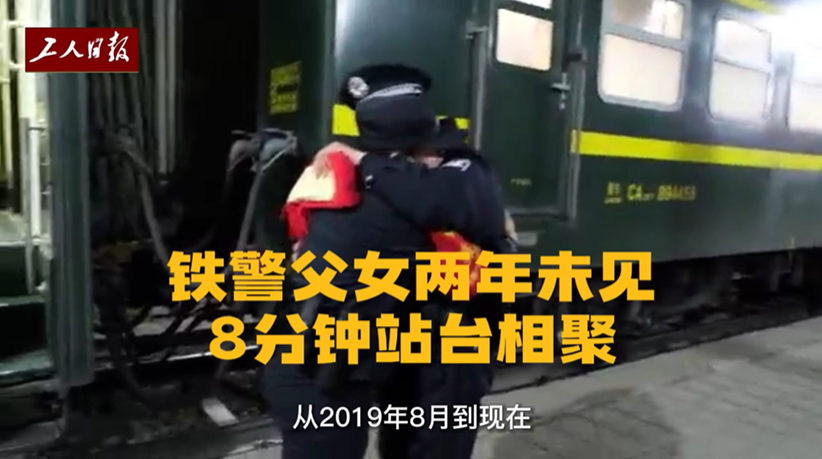 原标题:站台上相聚的8分钟,这对父女等了两年……