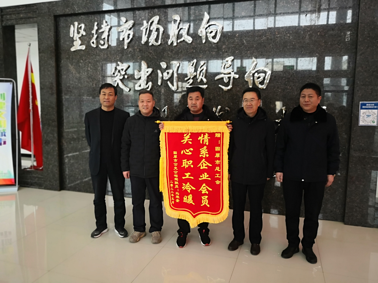 来自“娘家人”的关怀让职工群众倍感温暖。“我想用这面锦旗,表达和我一样接受过“娘家人”帮助的职工对党、政府和工会组织的感恩之情”,在固原市公交公司,职工马荣奎将一面绣着“情系企业会员,关心职工冷暖”的锦旗送到了前来慰问的工会工作人员手中。“这份珍贵的‘礼物’,是广大职工对我们的最好褒奖和激励”,市总工作人员激动地表示。