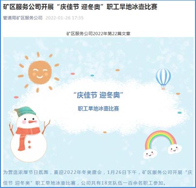 中工网讯 据“管道局矿区服务公司”微信公众号消息,为营造浓厚节日氛围,喜迎2022年冬奥盛会,1月26日下午,中国石油天然气管道局有限公司矿区服务分公司开展“庆佳节 迎冬奥”职工旱地冰壶比赛,共有18支队伍一百余名职工参加比赛。