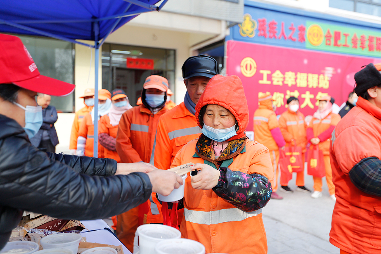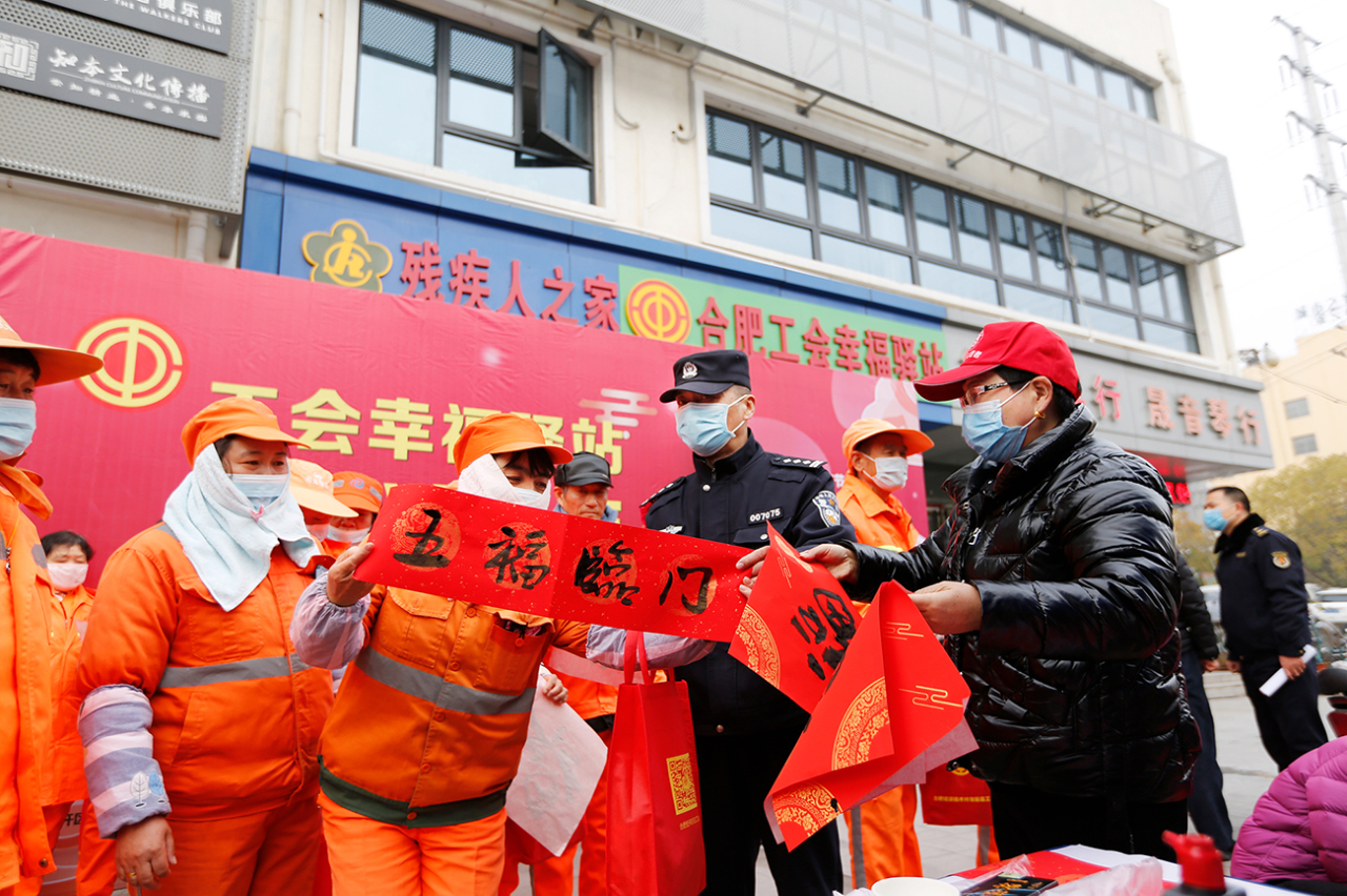 “小驿站”情暖劳动者幸福过大年。除“线上送福袋、云上送祝福”外,合肥市各级工会还依托“幸福驿站”等各类服务阵地,积极开展“两节送温暖”“驿站送‘福气’”等情暖劳动者系列活动,截至目前,共发放送温暖款物1488.95万元,走访慰问企业563家,慰问困难职工、一线职工、先进模范人物和新就业形态劳动者40498人次,切实把工会组织的温暖送到了广大劳动者的心坎上。