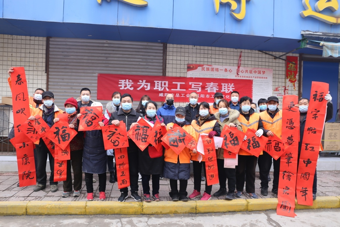 最近,伴随疫情防控持续向好,城区逐步解封,有序复工复产,咸阳市总工会、市工人文化宫开展了“我为职工写春联送祝福”活动。1月21日,他们早早备好笔墨纸砚,并组织市域10多位职工书法艺术工作者为职工群众义写春联千余副。