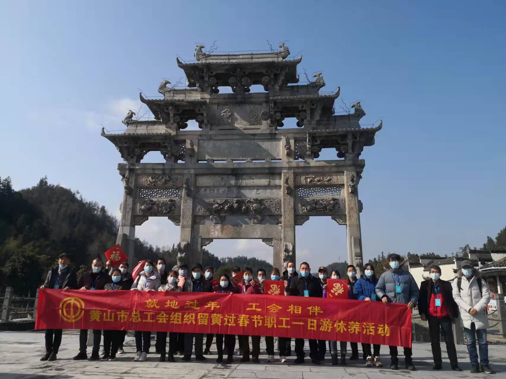 2月5日,黄山市黄山区总工会组织近30名留黄职工开展“工”贺新春、情暖职工一日游(休养)活动。