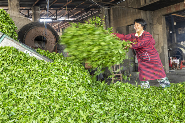 到了茶叶收获的季节,村民们忙着加工刚采摘下来的茶叶,脸上洋溢着收获的喜悦。茶叶种植产业助力我市贫困户脱贫致富,走向小康之路。