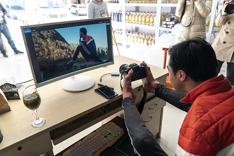 2020年11月11日,陈兹方在巴东野三关青龙桥工业园“陈兹方铺子”里剪辑视频。