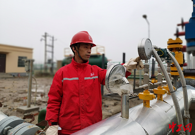 检查完设备,胡少武在井站周边巡视。他环顾四周后介绍说:“目前周边在建的项目很多,施工队伍多,动土作业容易挖断储气库前期配套的管线,一旦天然气泄漏容易引发火爆,所以我在巡线时,会提醒周边施工队伍,作业时远离输气管线。春节期间,还得注意附近村民放鞭炮的情况,避免安全隐患。”
