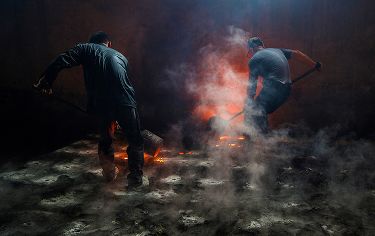 作品《铸梦》拍摄于黑龙江省宝清县鑫源农机铸造厂。农忙时节,鑫源农机铸造厂的工人们正在加班加点为作业在生产一线的农机铸造零部件。工人们挥汗如雨,我拿起相机拍下了这感人的场面。