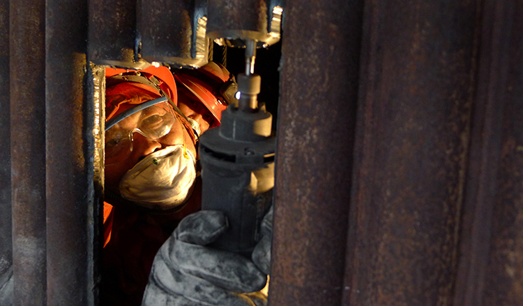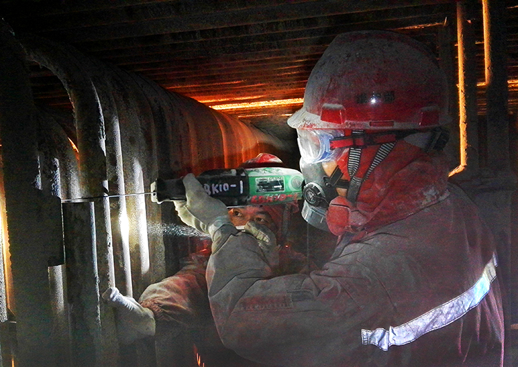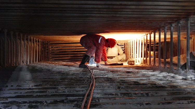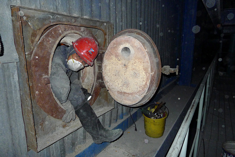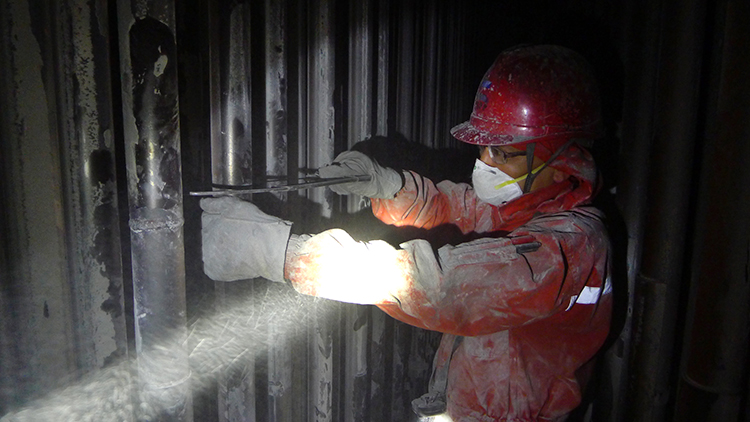 记录维护职工为保障锅炉设备安全,可靠运行,在锅炉狭缝间穿梭,排查隐患、消除故障,展示职工敬业爱岗的工作热情。