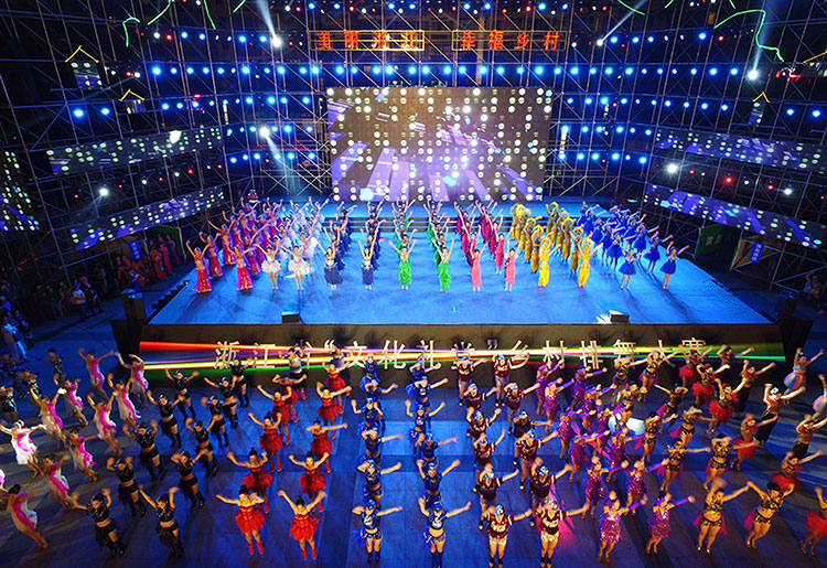 2015年10月24日摄于浙江省松阳县,浙江省排舞大赛在该县市政广场举行。近年来,浙江省依托农村文化礼堂、农村文化站等载体,积极推进“送文化”“种文化”活动,提升农村文化生活水平。