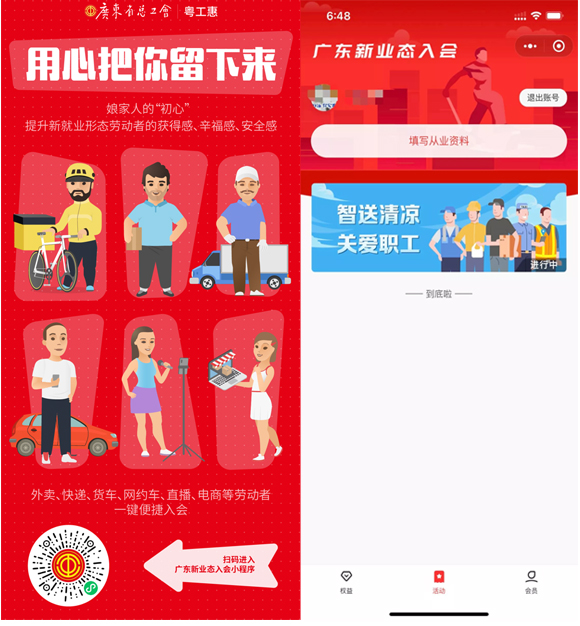 ■新就业形态劳动者只需登录“广东新业态入会”小程序,简单几步即可完成线上入会,智能便捷。